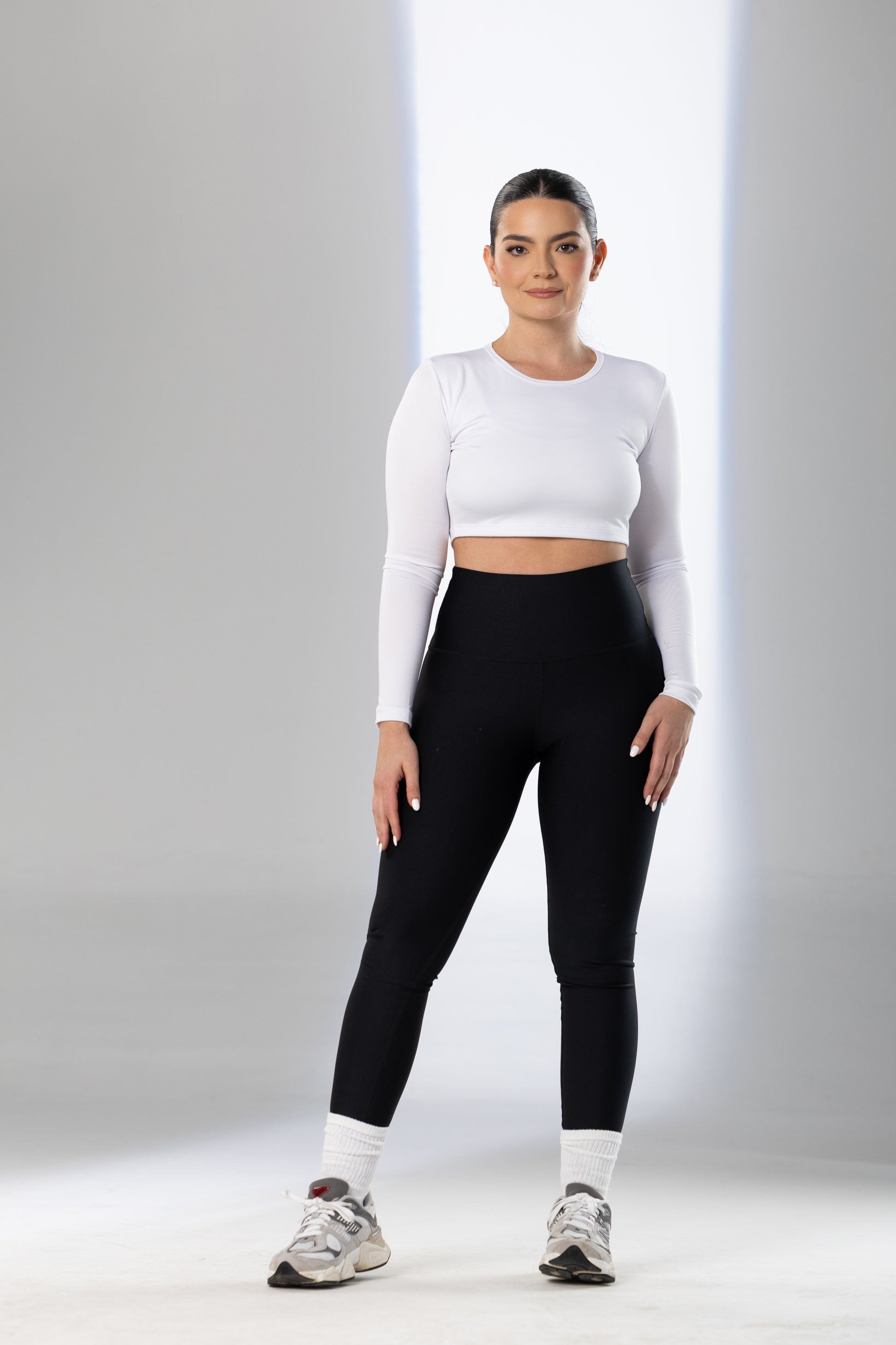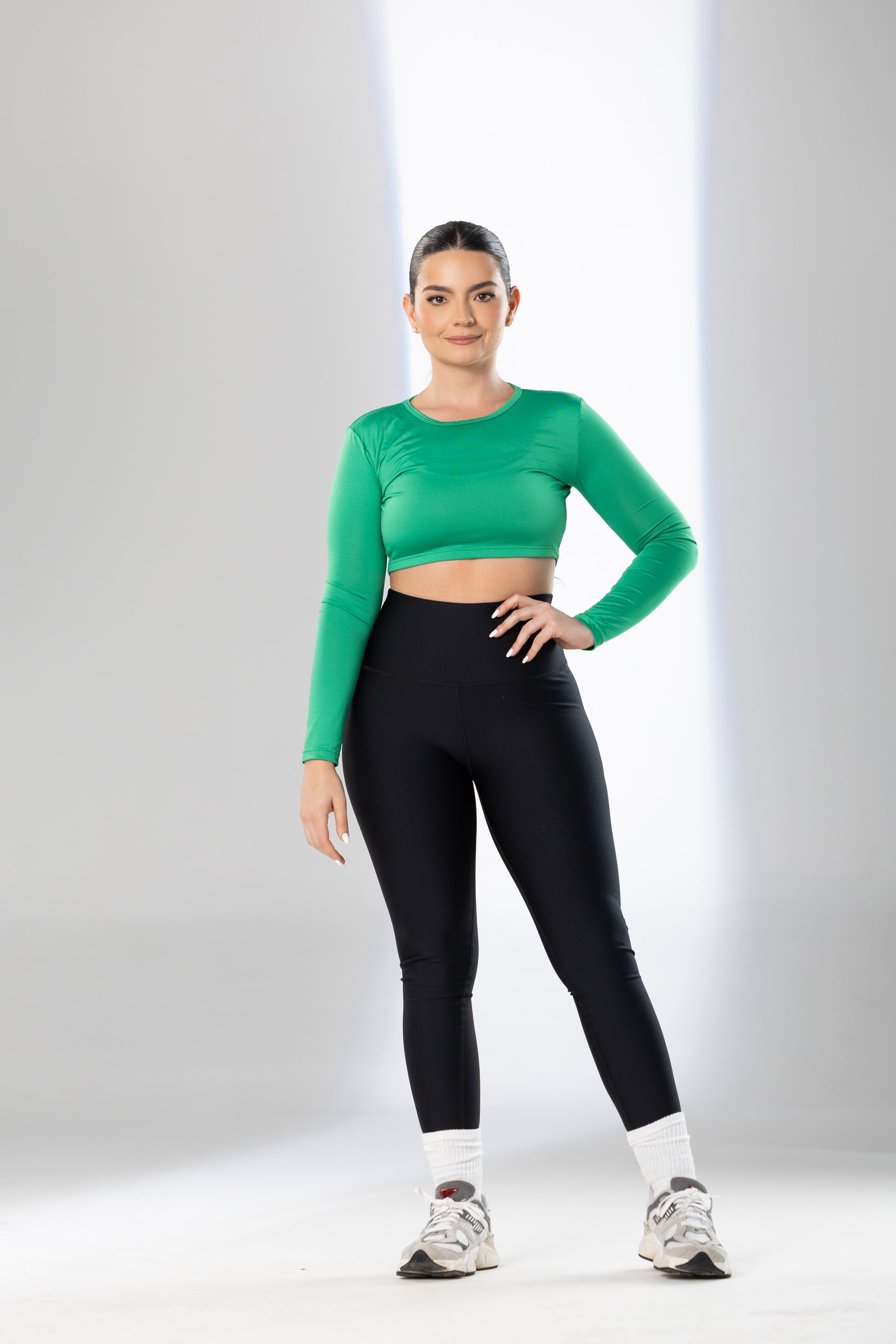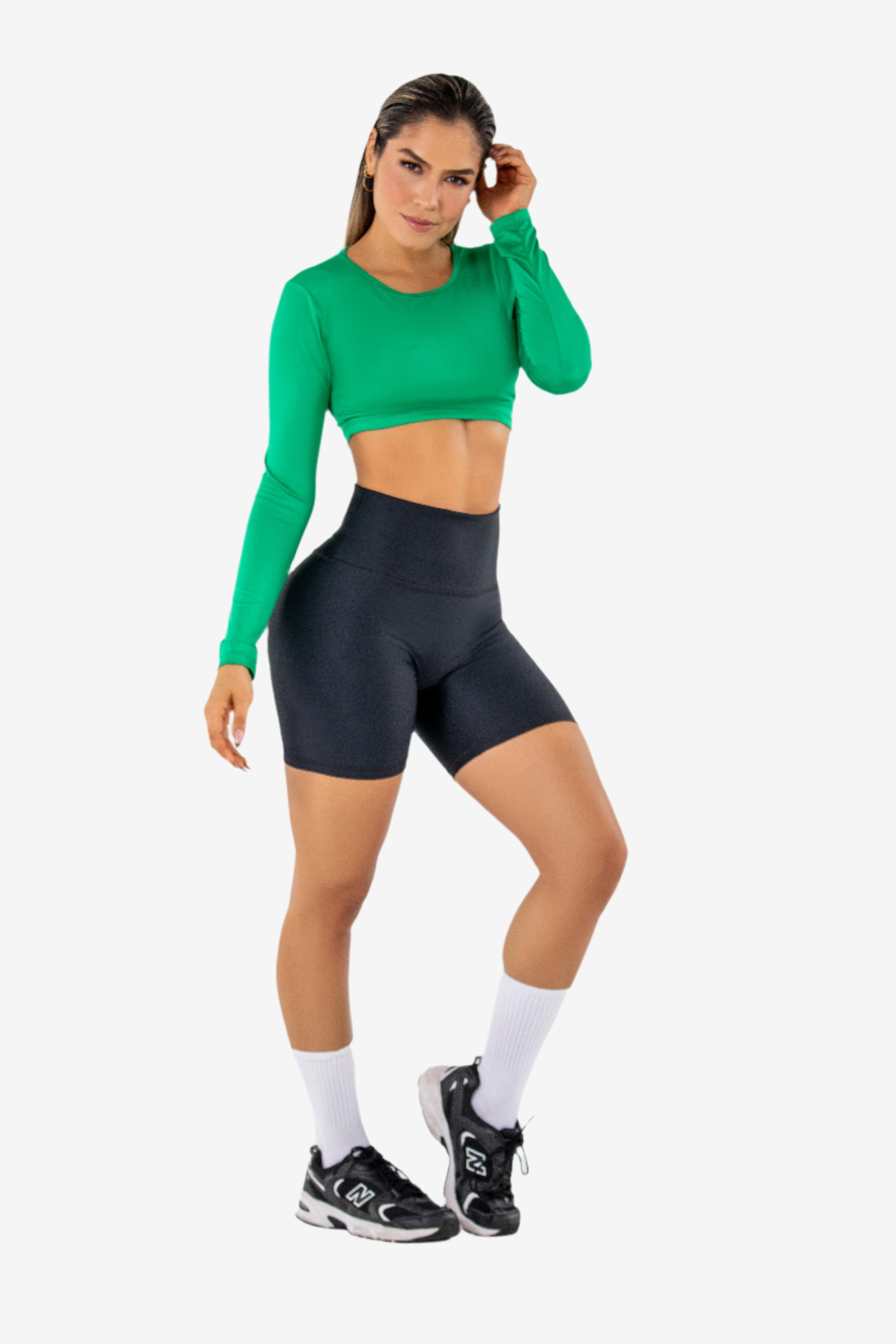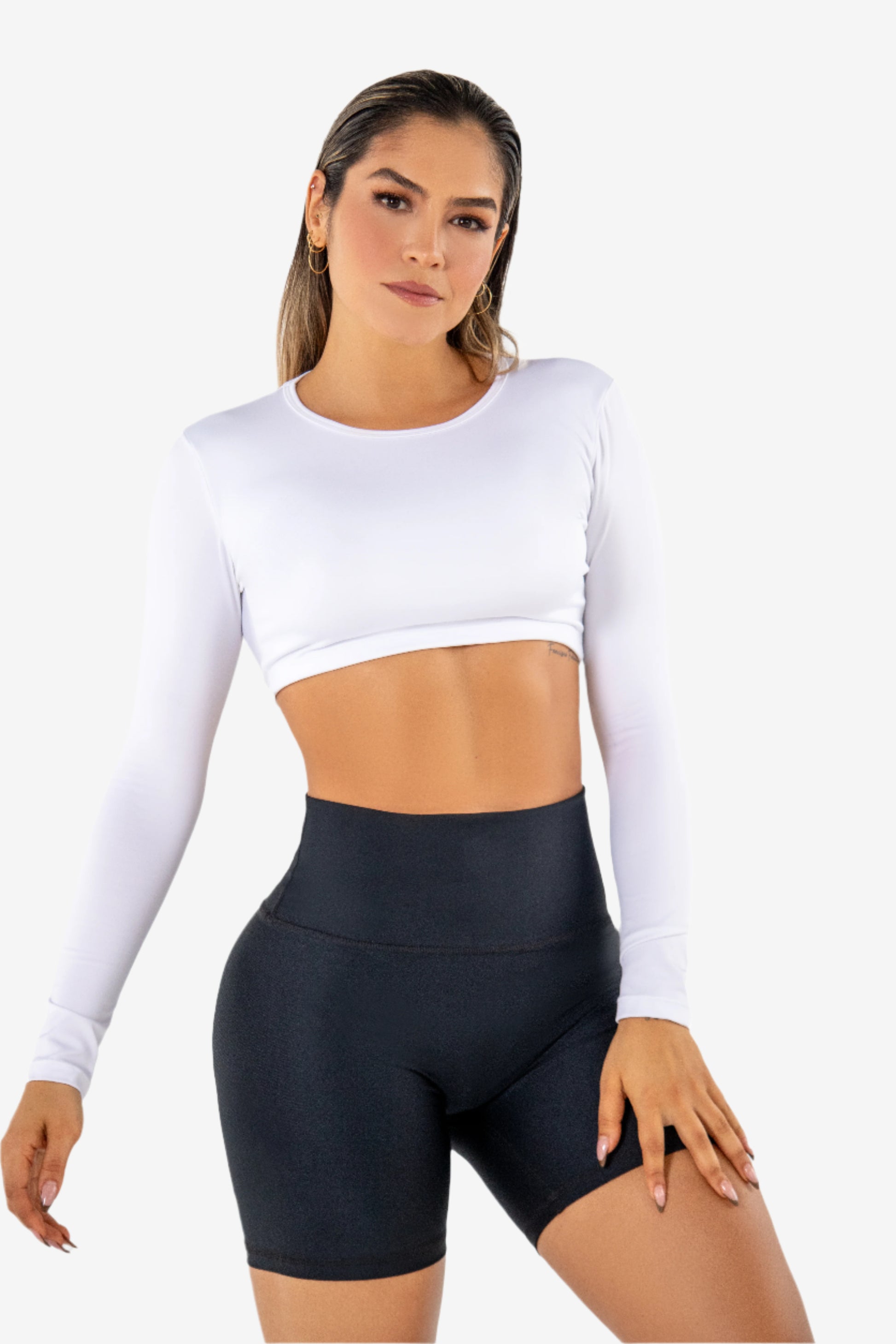 Jewel Neck Crop Top Model Info