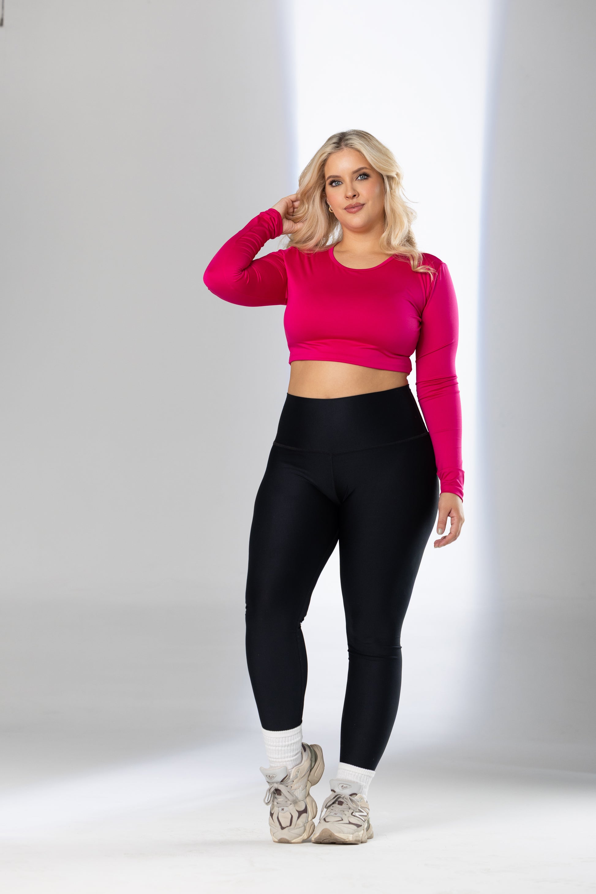 Blending everyday style with performance. Designed in pet hair resistant, quick-drying fabric, this long sleeve crop top keeps you comfortable from workouts to weekend wear. The wide hem stays in place without digging in. The classic jewel neckline offers a sleek, flattering silhouette for every body type.